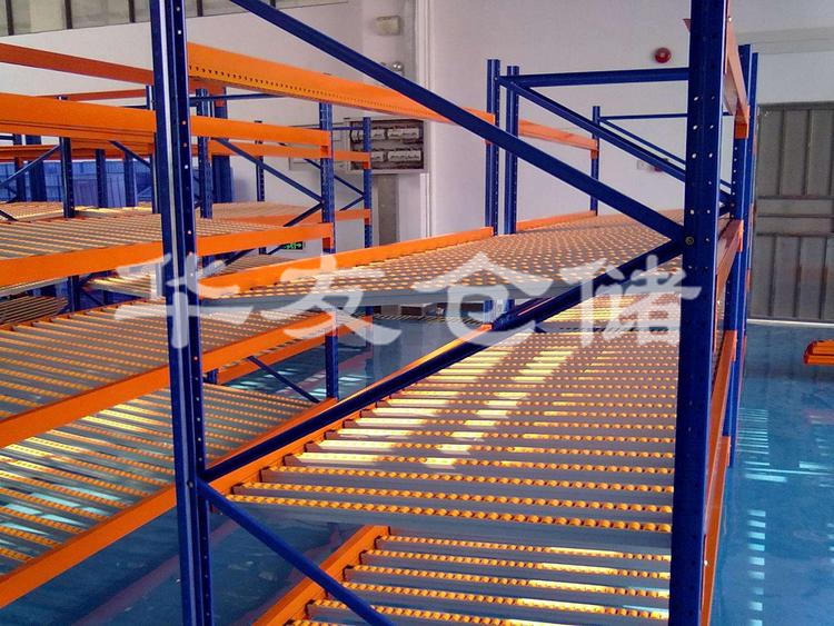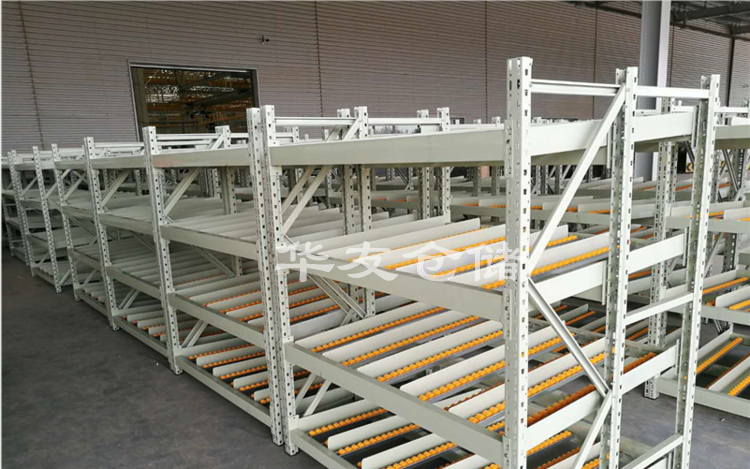 輥輪式貨架適合生產(chǎn)流水線或裝配線上及小包裝成品物料的存放,物料依靠重力沿輥輪下滑,操作方便,先進(jìn)先出。